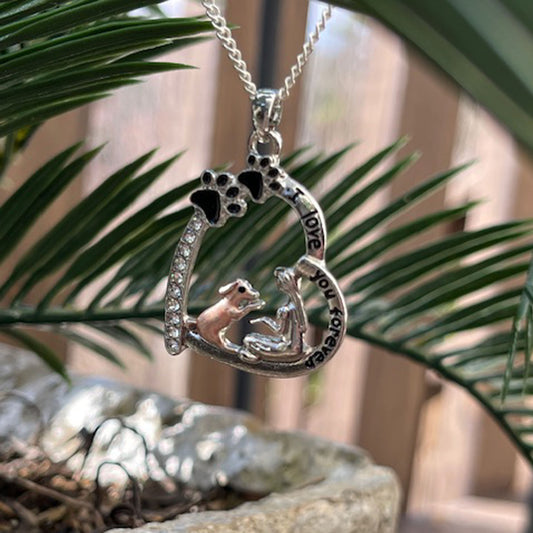 Cute Little Girls Hug With Pet Dog Pendant Necklace, Jewelry Gifts for Women, Mom, Girls and Best Friend, Anniversary Valentines Day, Holiday Gifts