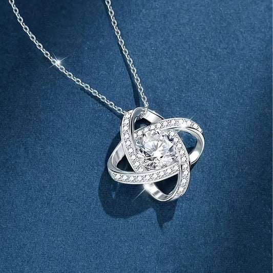 Love Knot Necklaces Moissanite Silver Diamond Pendant Necklace, Perfect Gift for Anniversary, Wedding, Birthday, Valentine's Day, Holiday and Christmas Gift
