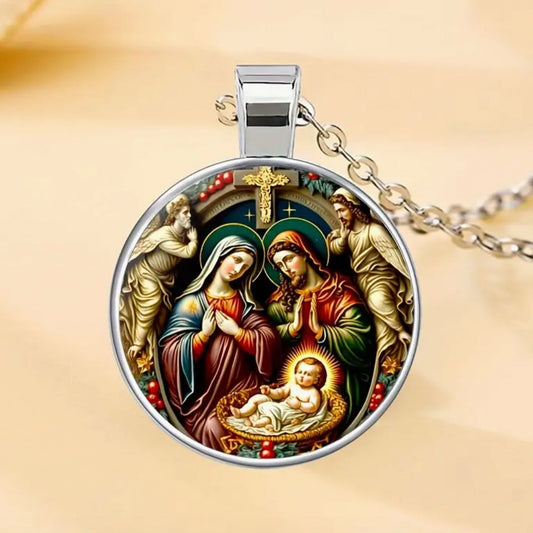 Retro Jesus Family Pendant Necklace, Best Christmas Gift for Women, Men, Girlfriend, Boyfriend