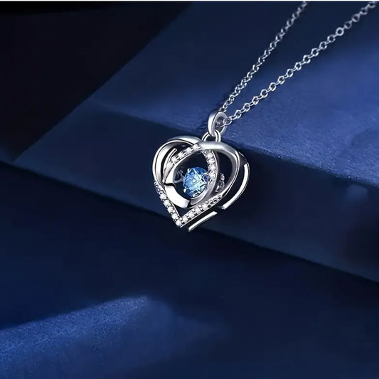 Love Heart Shaped Blue Zirconia Pendant Necklace - Dainty Heart Jewelry for Women