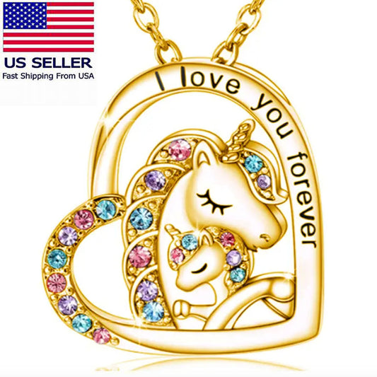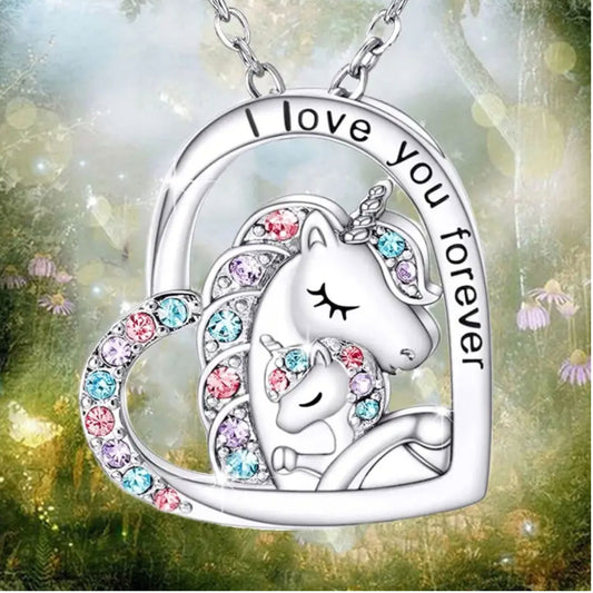 Lovely Heart-Shaped Silver Plated Color Heart Unicorn Necklace Birthday Jewelry Gifts for Women, Mom, Girls and Best Friend, Anniversary Valentines Day Gifts
